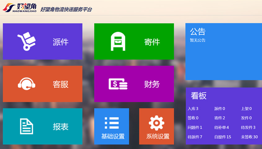 好望角物流快遞服務(wù)平臺以“最后一公里”為突破口,實(shí)現(xiàn)了快遞從配送中心到客戶手中的全流程服務(wù)。系統(tǒng)通過對接上游的快遞公司運(yùn)單進(jìn)行派件和計件操作,主要用來幫助該公司正確的統(tǒng)計派件、寄件數(shù)量,客戶服務(wù), 財務(wù)結(jié)算,店面管理等。用戶可通過使用該物流平臺,實(shí)現(xiàn)物流行業(yè)的派件(包括掃碼入庫,自提,收貨確認(rèn)), 派件登記(電子稱重,物流查詢跟蹤)。