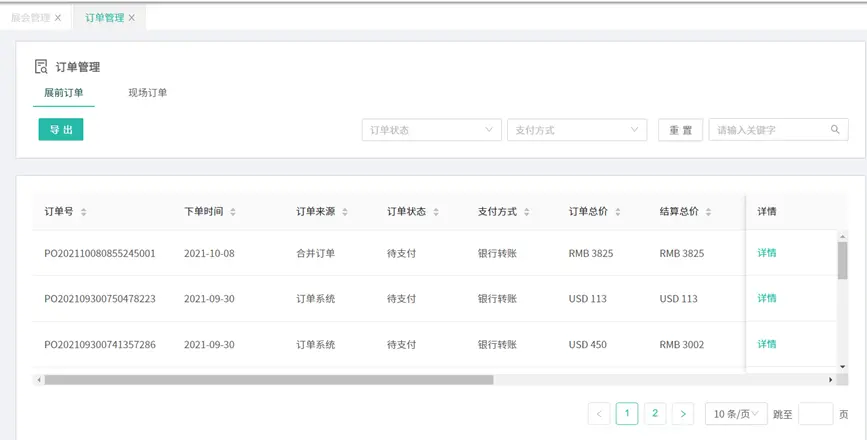 展商管理:導入?yún)⒄股虜?shù)據(jù)、新建展商、啟用禁用展商、導出展商信息